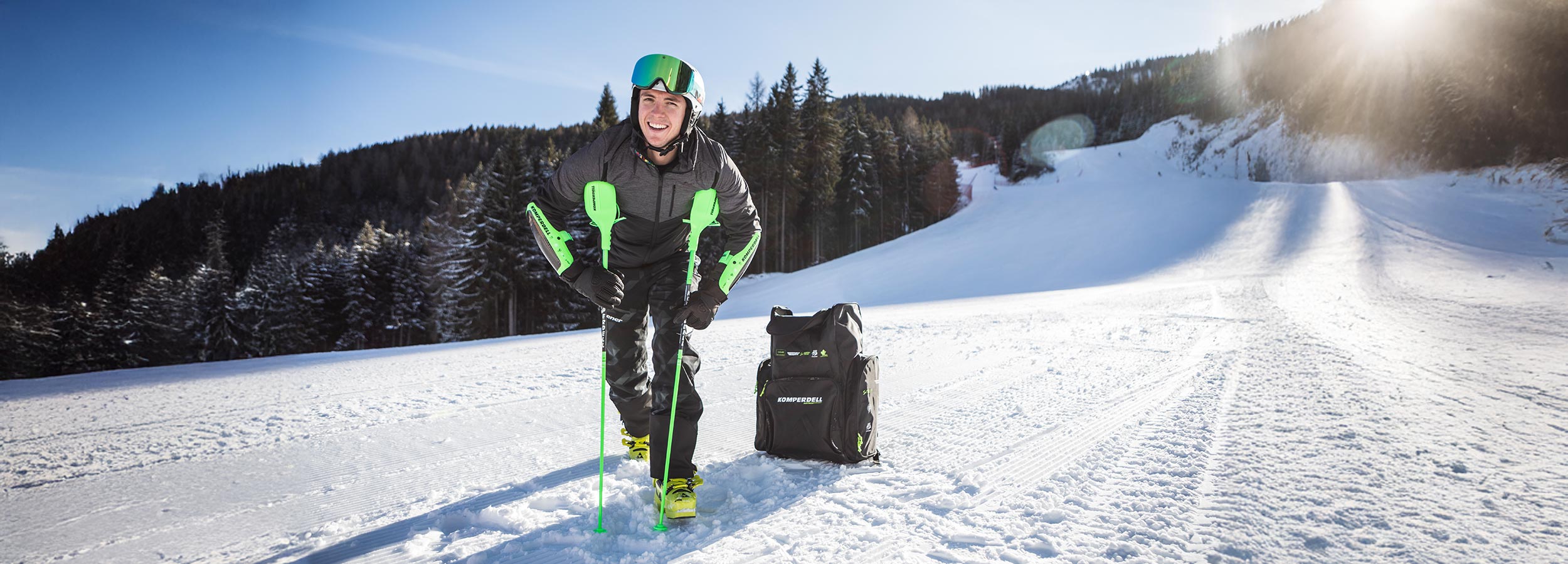 Der Worldcup Schlagschutz fungiert dank seiner speziell entwickelten Vorderkante beim Berühren mit dem Schnee als "dritter Ski".